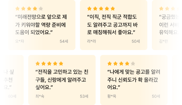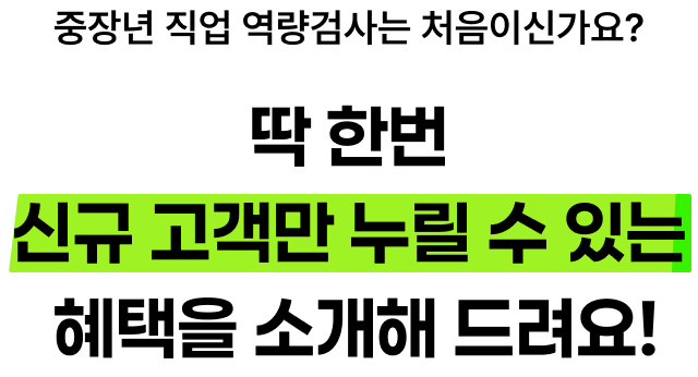 • 이미 ‘중장년 직업 역량 검사’ 응시를 완료한 회원은 쿠폰 지급 대상자가 아닙니다.